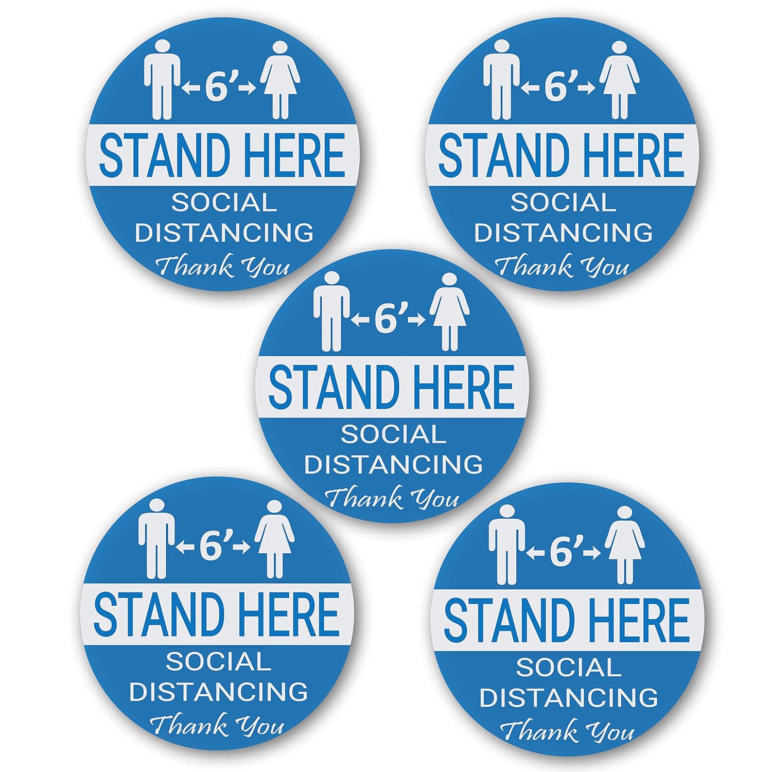 1070 5 Pack Social Distancing Wait Here Stand Here Keep 6ft In Between Distance Marker Floor Decal For Social Distancing While In Line 6 75 Floor Decals Covid 19 Corona Virus Sign Amazon Com